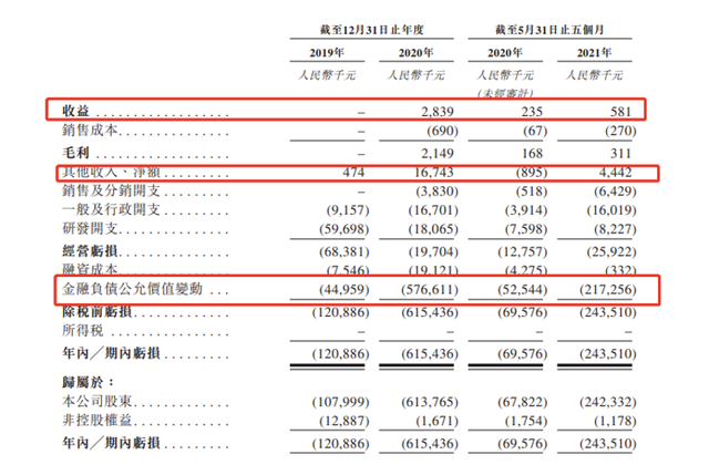 前文提到的金融负债便是数轮融资过程中形成的优先股,根据与资方签订的协议,四轮融资的参投者可以分别以0.3美元、0.6685美元、1.0043美元和1.4128美元的固定价格将前期获得的优先股转为普通股。这意味着公司未来越被市场看好,越需要承担高昂的转股成本,相应的金融负债公允价值变动就会拉低企业近几期利润。