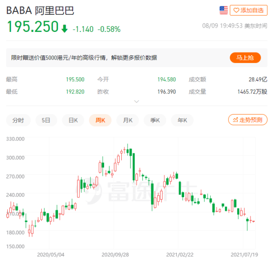 情绪传导至资本市场,影响立竿见影,8月9日阿里港股早盘一度跌超4%,收盘跌幅2.48%。而实际上,从去年10月开始,阿里的股价就已进入下滑轨道,至今阿里跌去了近2万亿人民币市值。