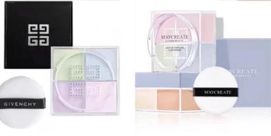 譬如下面网友贴出来的这张图里,左边是其他品牌,右边是novo。右边novo的遮瑕,外观和左边Lamer的一款面霜十分雷同。下面的散粉就更不用说了,novo这款简直就是将纪梵希的四宫格“等比例复刻”出来了。