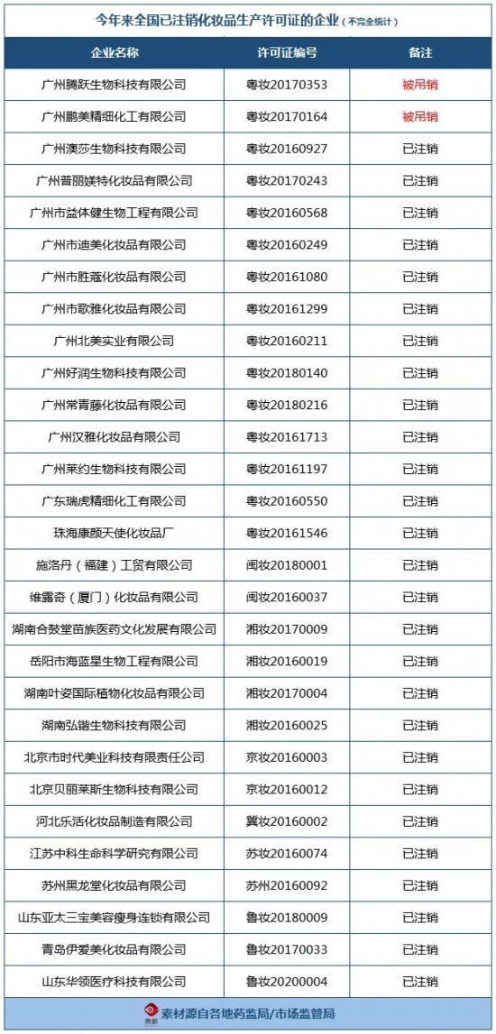 尽管赶上了国潮热,但每年倒在圆梦路上的彩妆企业依然不在少数。据青眼不完全统计,今年以来,广东、北京、江苏等全国多地已有29家化妆品生产企业主动注销或被吊销了许可证。