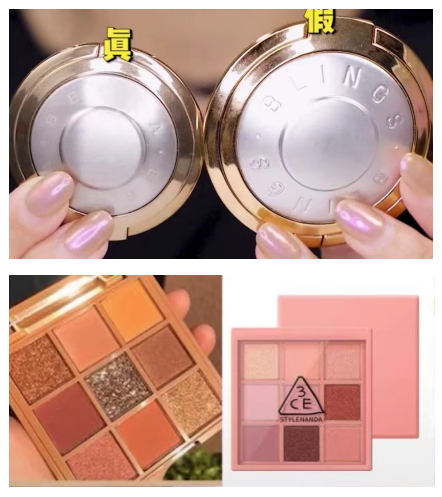 前述提及的几个有过抄袭“黑历史”的国产品牌,只是少数产品“借鉴”过其他品牌。譬如Bling抄的是becca的高光(下图上)、Holdlive抄的是3ce的眼影盘(下图下)等等。