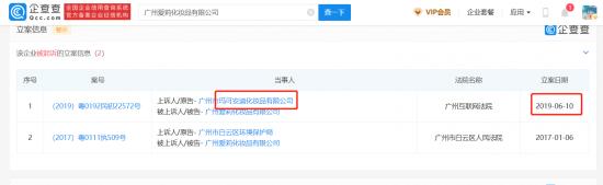 “螳螂财经”查询到,早在2019年,novo所在的广州爱莉化妆品有限公司,就被广州市玛可安迪化妆品有限公司告过。