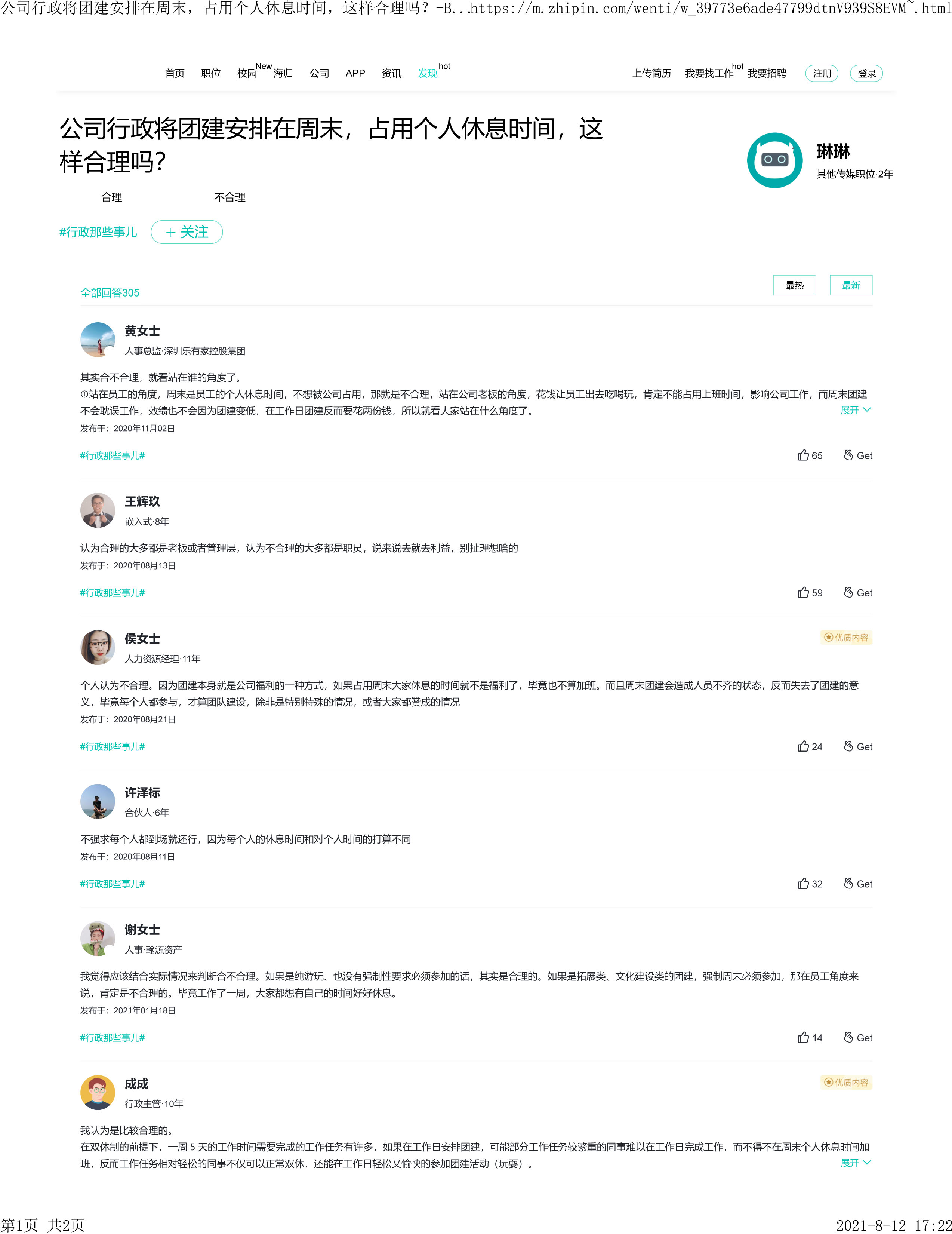 对于这个问题,Boss直聘论坛上还展开过一番争论,包括从事人力资源工作的行业内人士,对此都持有不同的观点。