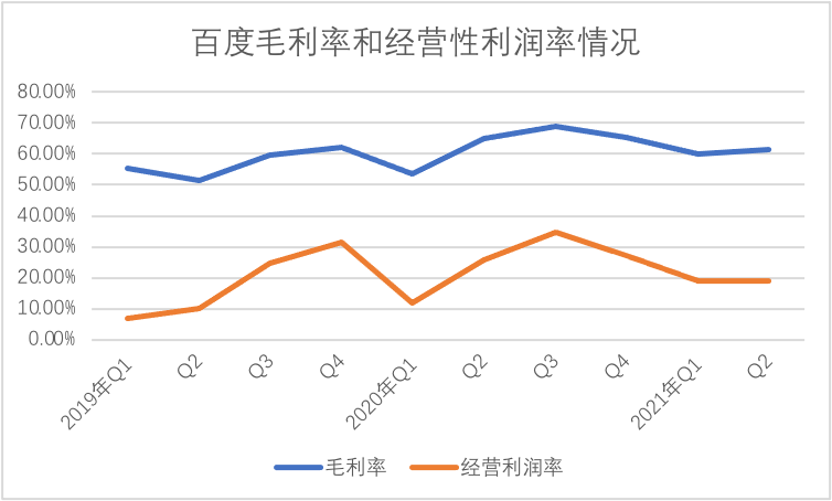 完成百家号的初始阶段之后,百度削减内容补贴等方面的成本,使得2020年之后毛利率就一直在改善区间,经营性利润率亦是如此。