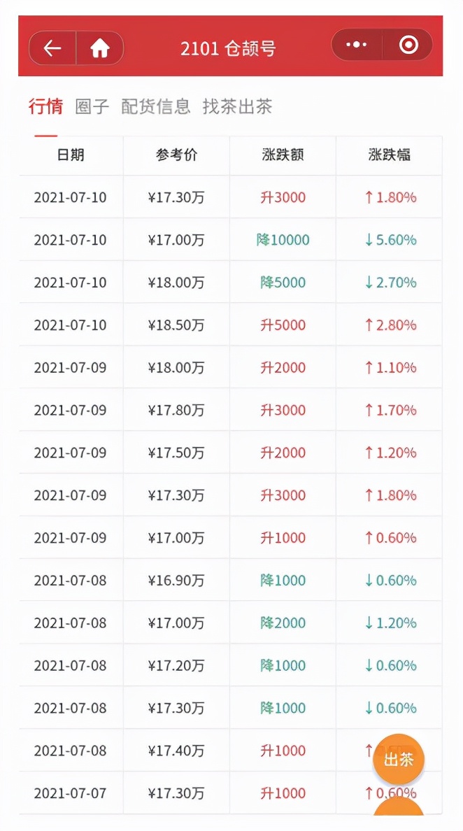 在大益茶投资圈,有查看大益茶走势的平台,在这些平台上,每一款大益茶就是一只股票,代表茶叶等级的“唛号”就是股票代码。通过“唛号”可查询与之对应的价格、专业版的K线图、涨跌幅和最新行情走势分析。![]()