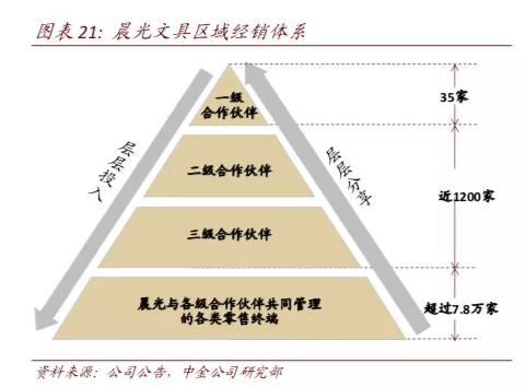 晨光自上而下建立了中央集权式的管理模式,具体体现在统一价格、统一形象等方面。