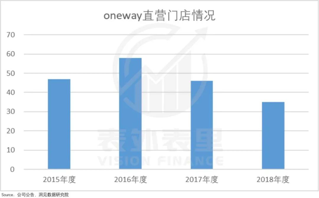 而361度,除了2014年与One way联姻拓展高端专业户外市场外,没有其他的品牌布局,且One way经营效果不佳:门店数在16年之后呈下降趋势,18年之后更是不再披露。