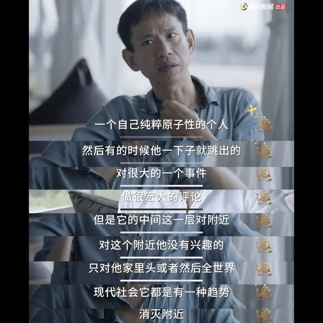 在许知远的节目《十三邀》中,人类学家项飙提到了一个概念“附近的消失”,意思是说人只有自我和宏大的世界,而对于中间这一层却消失了。