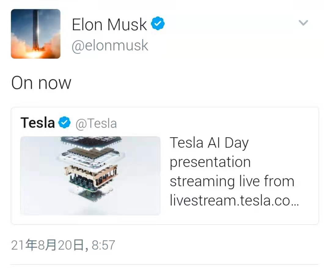 台下的马斯克,还见缝插针玩起了Twitter,8点57分发了条推文:On now。