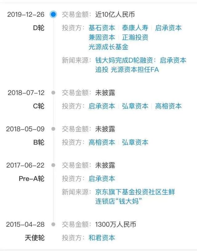 钱大妈融资历程 来源 / 天眼查