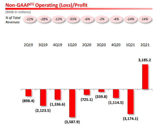 财报显示,不按美国通用会计准则(Non-GAAP),上季度拼多多经营利润为人民币31.85亿元,为近两年来首次盈利;净利润为41.25亿元,为两年来第二次转正。