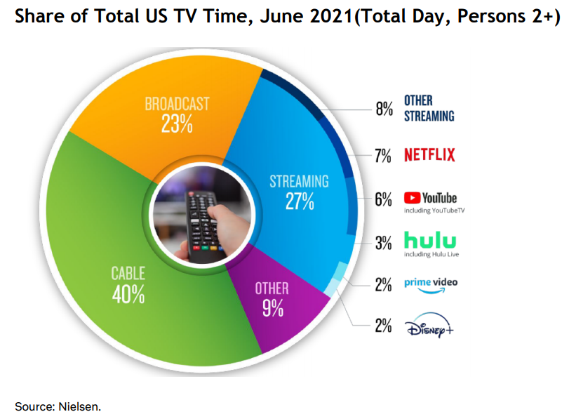 除了虎视眈眈的流媒体,还有传统电视和YouTube在抢占用户的注意时间。Netflix联合创始人、董事会主席Wilmot Reed Hastings就曾直言,(相比于Disney+),传统电视和YouTube才是最大的竞争对手。