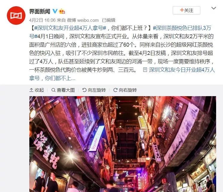 据说,目前长沙超级文和友单店在“两微一抖”的曝光量累计已经超过60亿次。