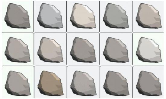 以“EtherRock”为例,它是以太坊上颇有名气的NFT项目之一。如下图所示,它的表现形式是石头图片,共计100张,这些石头仅仅只在颜色上有轻微的不同。