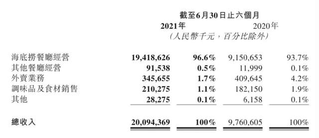海底捞2021年中报显示,今年上半年,其营收200.9亿元,同比增长105.9%;实现净利润9452.9万元,同比增长109.9%。不过,考虑到去年上半年疫情导致大部分门店长时间暂停营业,这个同比增长率的参考价值并不大。