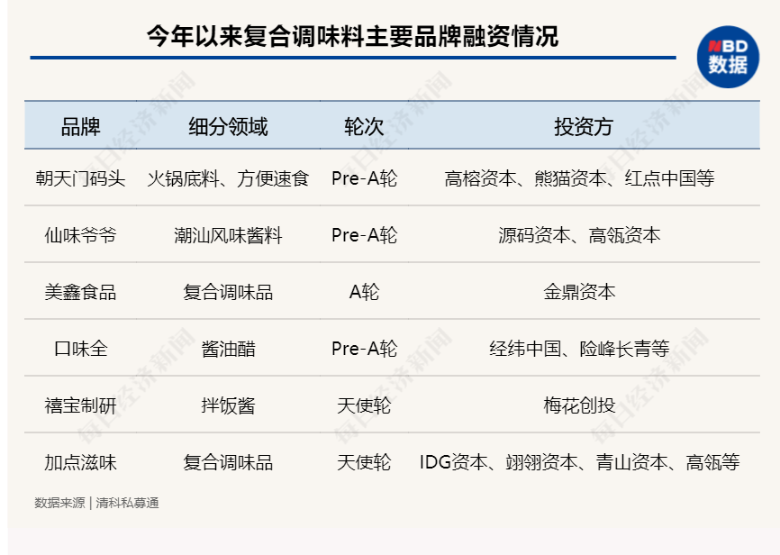 这样一本万利的生意必然会吸引大量一级市场资本闻风而动。高榕资本投资朝天门码头,高瓴天使轮投资了“加点滋味”,经纬中国投资了“口味全”。
