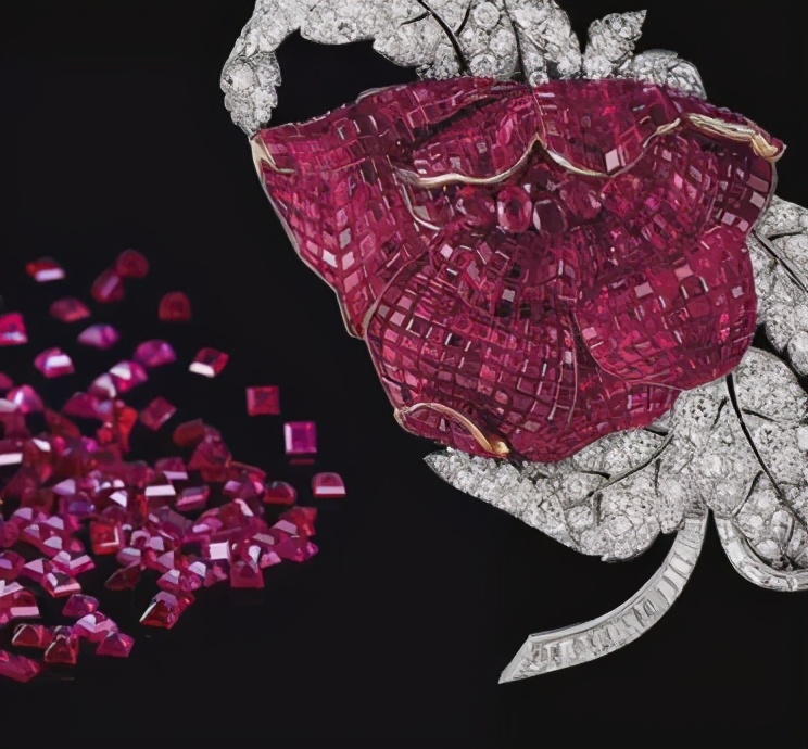 隐秘式镶嵌即将一颗颗细小的宝石紧密地排列在一起,没有任何肉眼可见的金属或镶爪,能最大限度地表现宝石的颜色与亮度,无论是薄如蝉翼的翅膀还是晶莹剔透的雪花,都能完美再现它们的细腻与灵动。