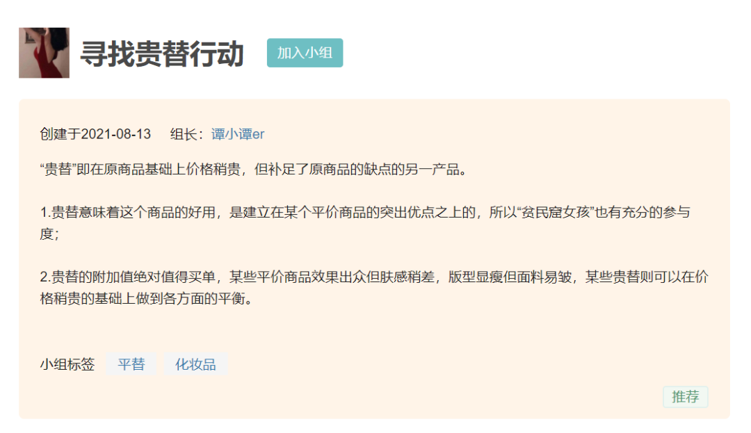 在小红书“贵替”热度突然升高的同时,8月13日,豆瓣“寻找贵替行动”小组成立。
