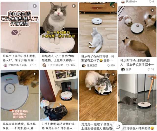 在社交分享平台小红书上,有近二分之一素人宠物博主种草过石头扫地机器人。搭上宠物经济,就等于搭上了天然的流量。