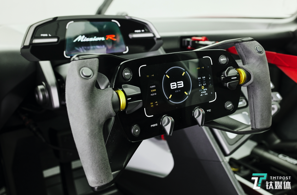 座位右侧的触控显示屏可调用例如车手生物识别数据的信息。内饰中还设置了大量其他的摄像头,可用于直播输送精彩的画面。