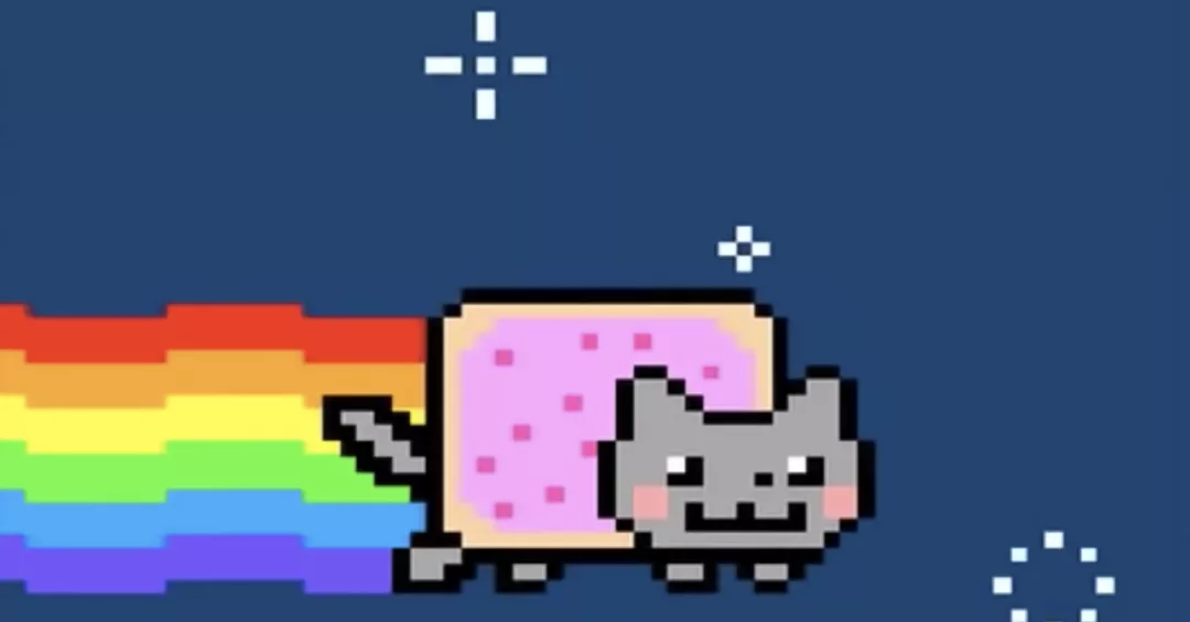 就连网络语言表情包也成了有心之人的“财富密码”。上图这个像素极低、虽然可爱但是不知道表达什么含义的彩虹猫表情包,被创作者Chris Torres在Foundation网站进行拍卖,最终以60万美元的价格售出。一名英国12岁的男孩在暑假期间,创作了一些列不同样式的NFT鲸鱼“表情包”,凭借独特的卡通像素画风,在平台出售后获得了约250万元的收入。