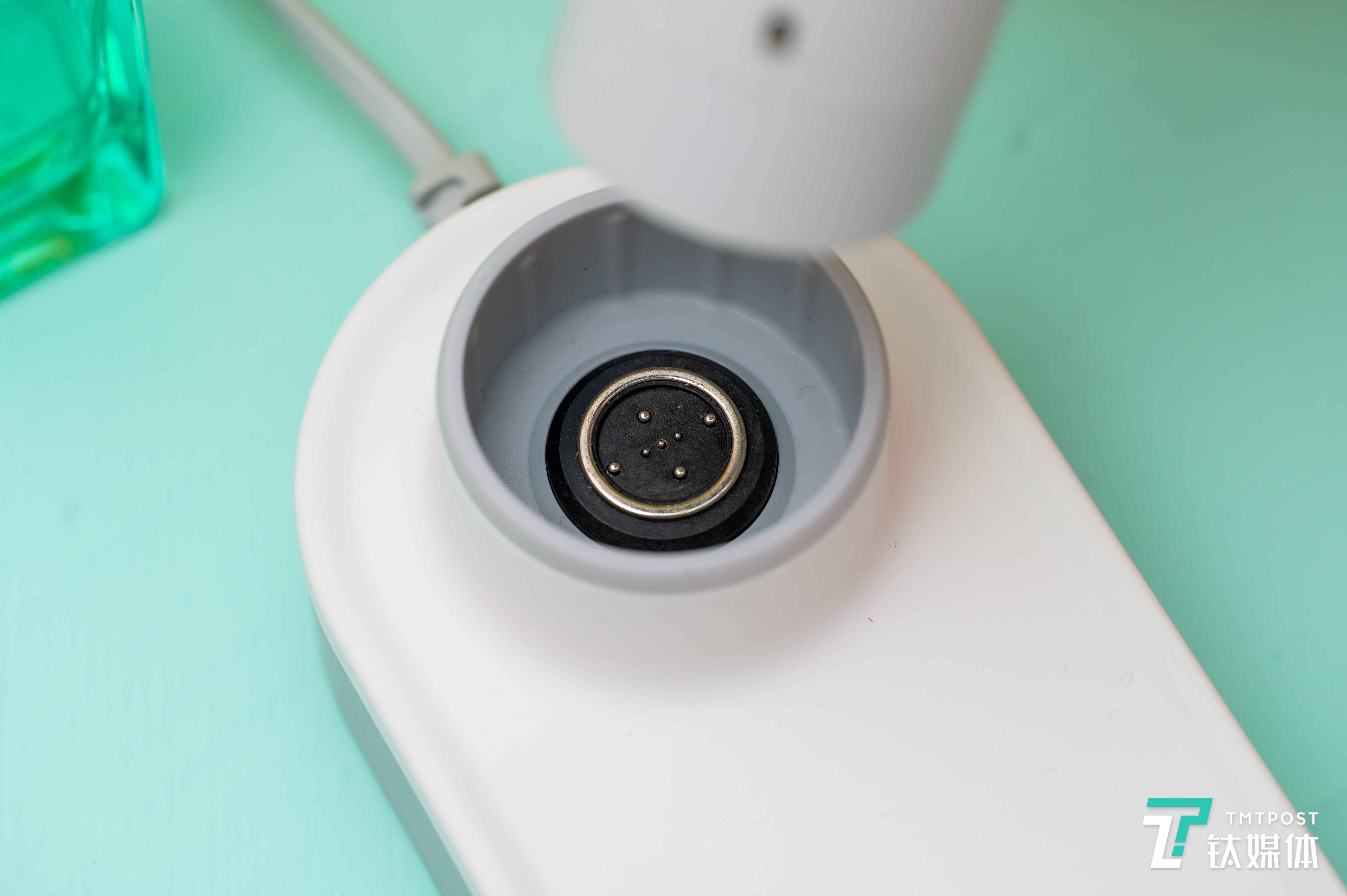 除此之外,当机器检测到手持姿态长时间没有变化后,为了避免对头皮单一区域的长时间照射,光照系统也会自动由常亮变为闪烁状态。放桌面三到五秒会自动停止,一分钟内拿起又能继续启动吹发。类似的细节还包括机身底部的童锁、机器倾倒后自动断电等等。