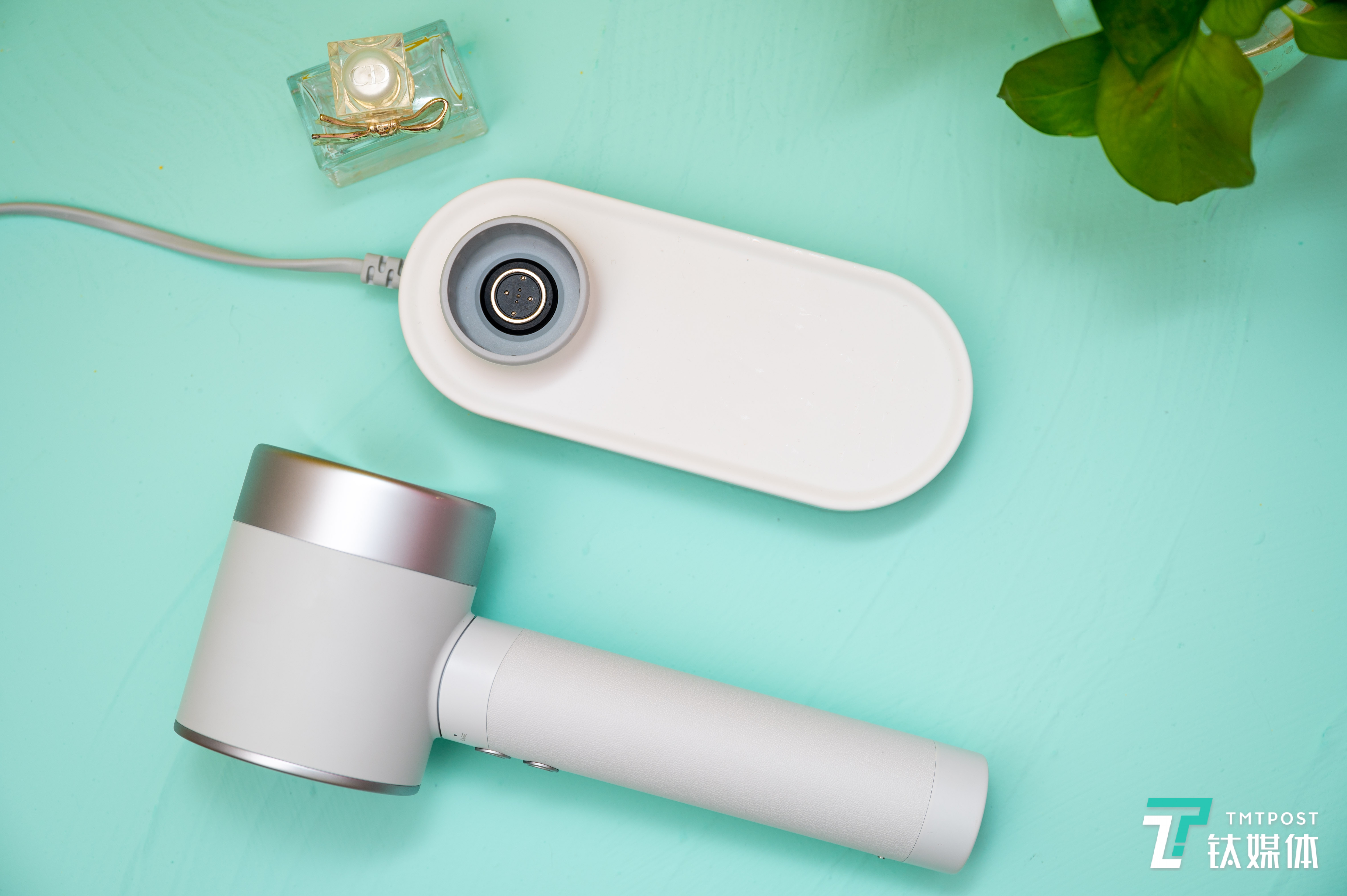 此外,Zuvi原里光能无线吹风机的充电底座还具备一定的重量,且底部采用了吸附式设计,这就避免了吹风机摆放时出现倾倒的现象。平时使用中,笔者也会摆一些装饰物在底座空档处,能够起到更好的装饰性作用。
