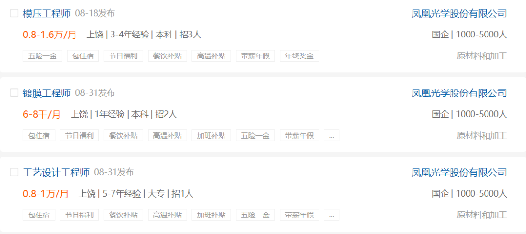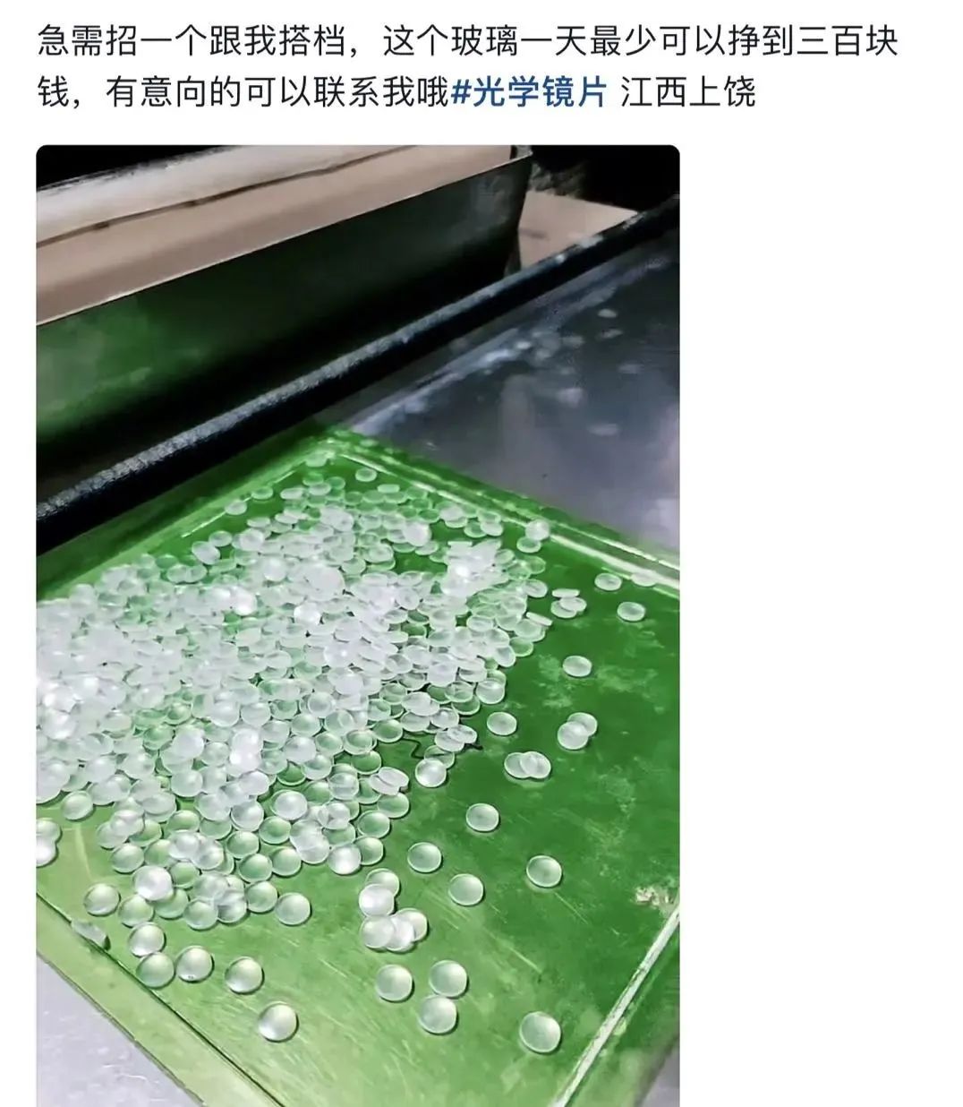 在前程无忧上,上饶镜片加工企业的招工上普遍给出了6k-10k的月薪,相比于上饶当地4.5k的平均薪资水平,“磨镜片”已经算是一个高薪的行当了。