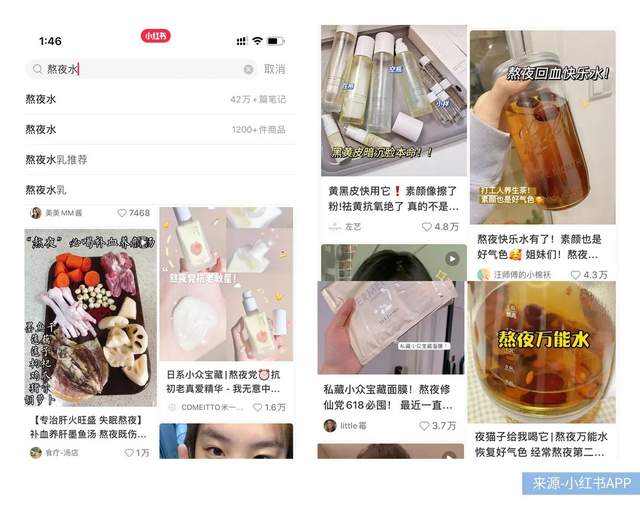 在小红书博主们“打工人冲啊”“夜猫子给我喝起来”“熬夜回血快乐水”等花式种草之下,“熬夜水”不仅是补气养生降火降燥的良药,还成为能在熬夜后迅速恢复满满元气的神器。