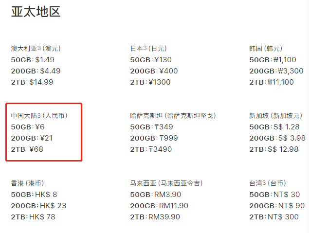 据苹果官网,iCloud中国大陆地区定价标准为,50GB空间6元/月,200GB空间21元/月,2TB空间68元/月,分别对应年收费72元、252元、816元。百度网盘一次性年收费,会员2T空间96元(查询时显示此为优惠价,原价为120元),超级会员5T空间298元(显示原价360元)。