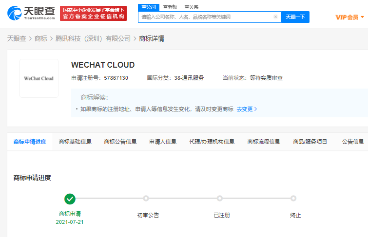 腾讯公司已于今年7月注册了“WeChat Cloud”商标,业务范围涉及网站服务、通讯服务、广告销售等,目前这一商标处于“等待实质审查”状态。如果只从这一工商信息变更的情况来看,微信云存储可能真的要来了。