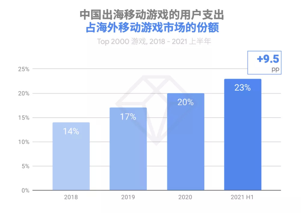 国内买量不行就放眼海外,是不少游戏公司的通用办法,国产手游出海也早不是个新鲜的话题。2019年就有报道显示,中国手游在海外市场占比超过15.8%,Google与App Annie联合发布的《2021年移动游戏出海洞察报告》也显示,上半年中国移动游戏海外支出达81亿美元,市场达到了23%的份额。