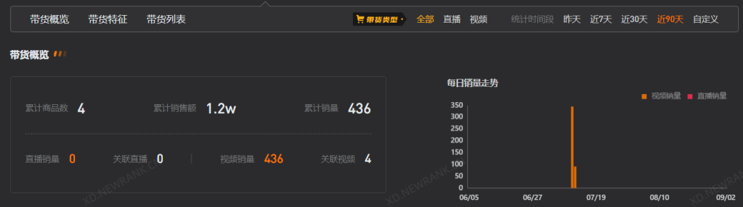 据新抖数据显示,该博主近90天内累计带货销售额达到1.2万元。