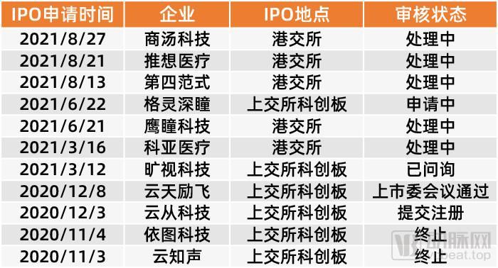 除了上述独角兽,近期还有云天励飞和格灵深瞳两家AI独角兽提交了上市申请。不过,根据招股书和公开信息显示,这两家企业并未涉足医疗健康领域。
