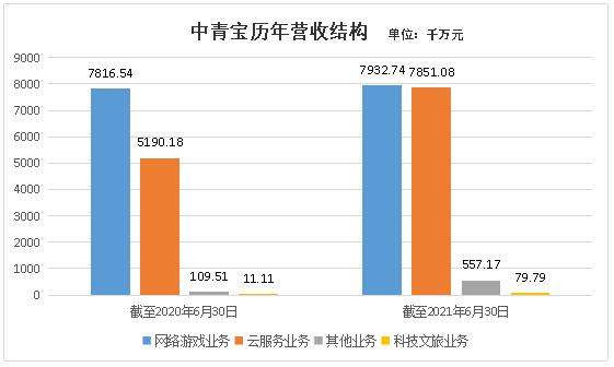 所幸,中青宝目前还有云业务撑腰,翻阅数份财报可以发现,近些年来中青宝的云业务占比正持续增加。截至今年6月30日,其云业务创造收入7851.08万元,占比提升至47.81%。