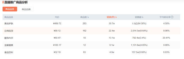 彩虹夫妇直播推广商品品类分析 图源 / 蝉妈妈数据