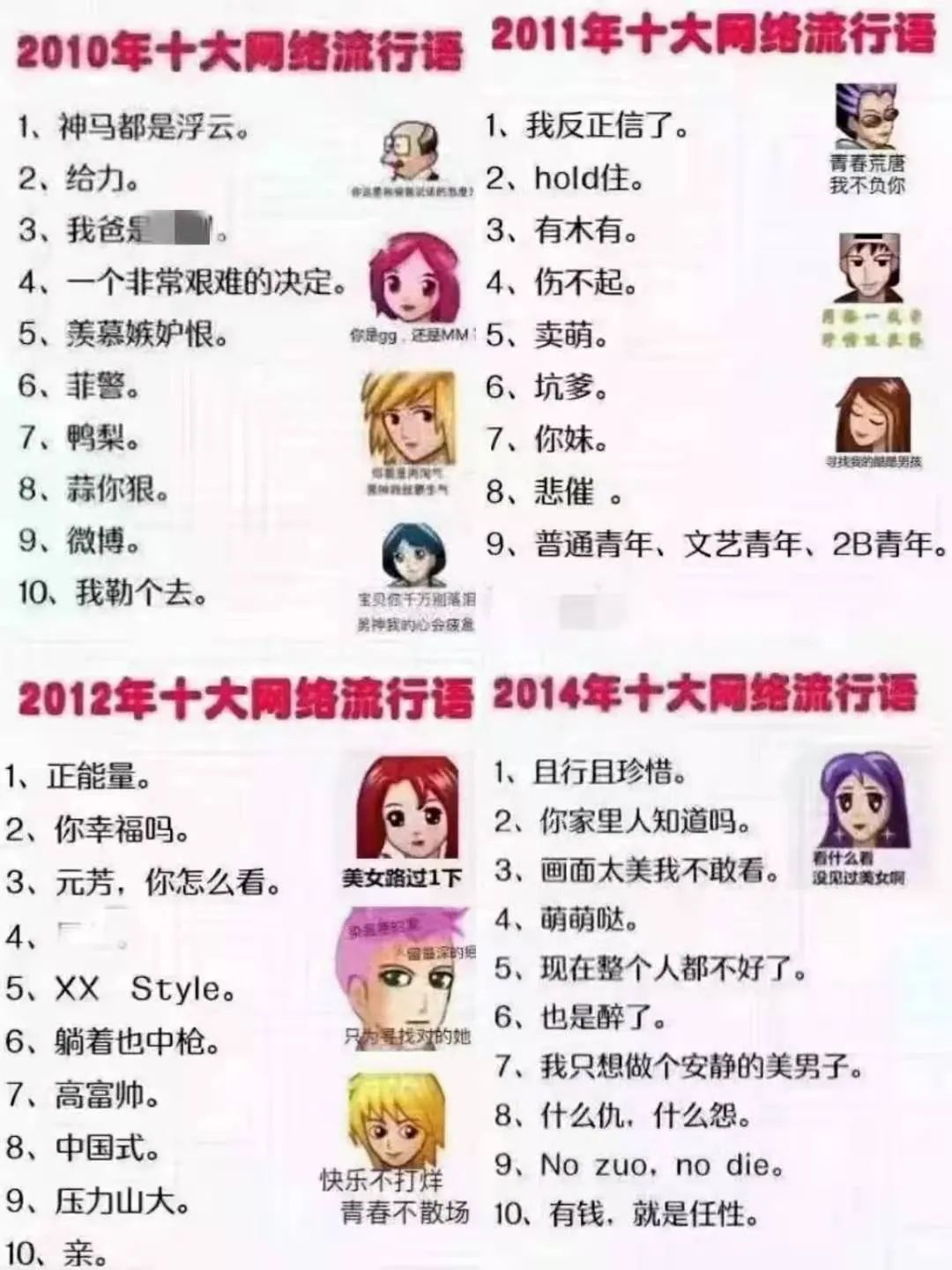 可以说,在2010年左右,“网络流行语”或者“梗”的形成还是相对大众化的,具有全民属性,没那么“非主流”。