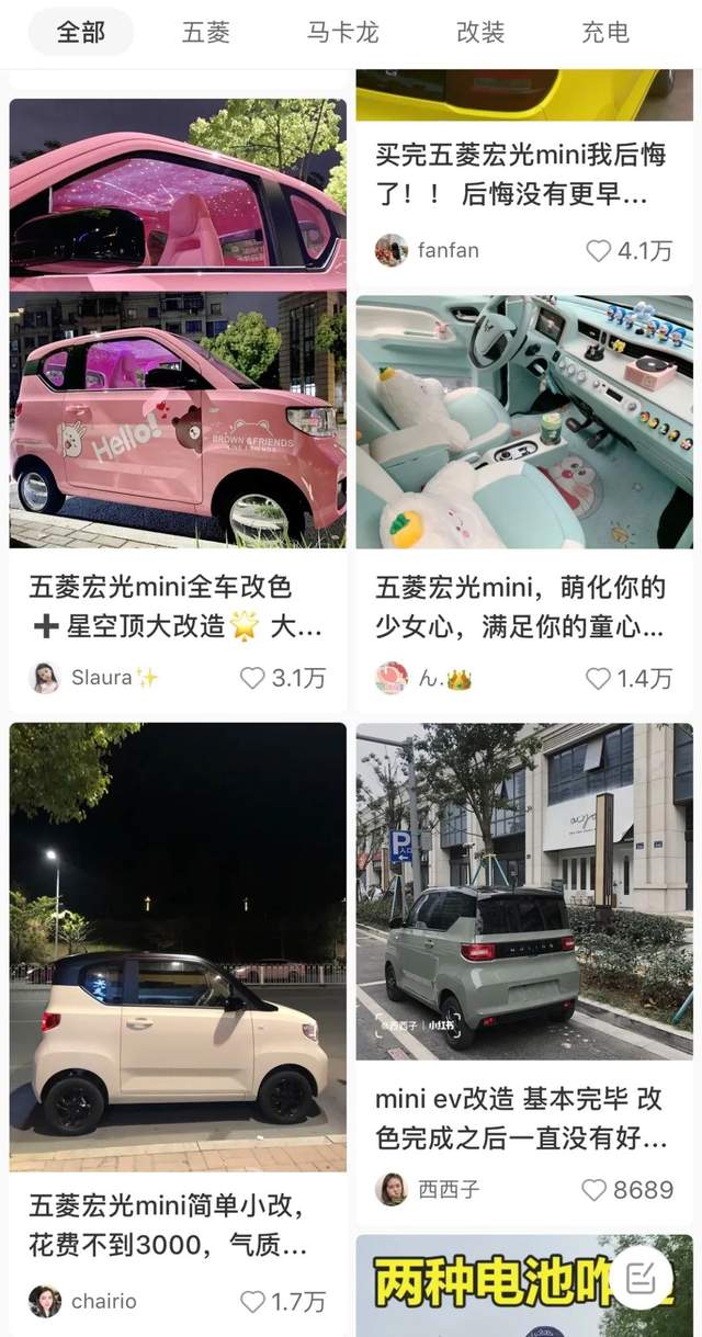 小红书上的宏光MINI EV改造贴