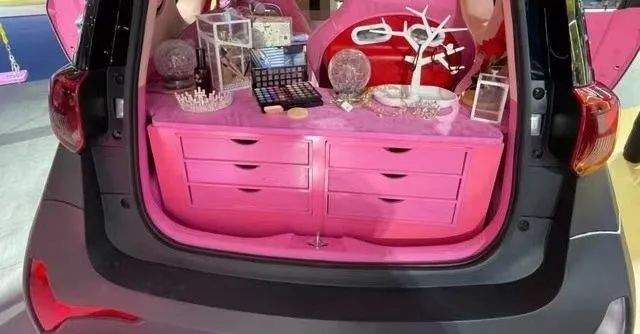 奇瑞QQ、荣威科莱威、哪吒V……这些新车无一例外采用了粉色的外观,粉色方向盘、粉色座椅、粉色中控台,有些甚至连轮圈也是粉色的。更有甚者,把后备箱改造成了一个梳妆台,车名就叫“女王梳妆台”。
