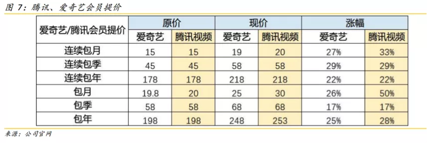 以头部平台爱奇艺和腾讯视频为例,两家公司先后公开了提价策略。