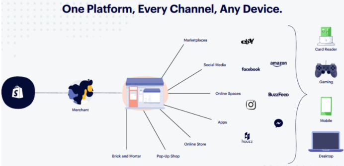 相比起来,Shopify今年先后与Facebook、谷歌建立合作伙伴关系,除了能对接社交平台外,还能与亚马逊、 eBay 等电商平台实现对接,跟踪、管理全渠道商品、订单及用户数据信息。