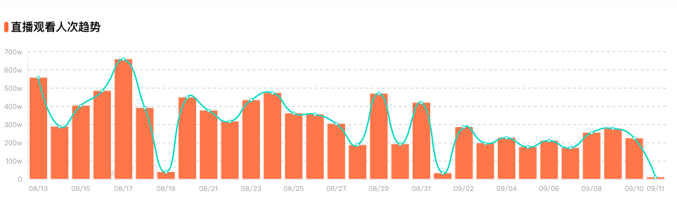 美少女嗨购直播间观看人次呈下降趋势/来源蝉妈妈
