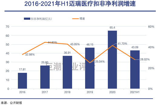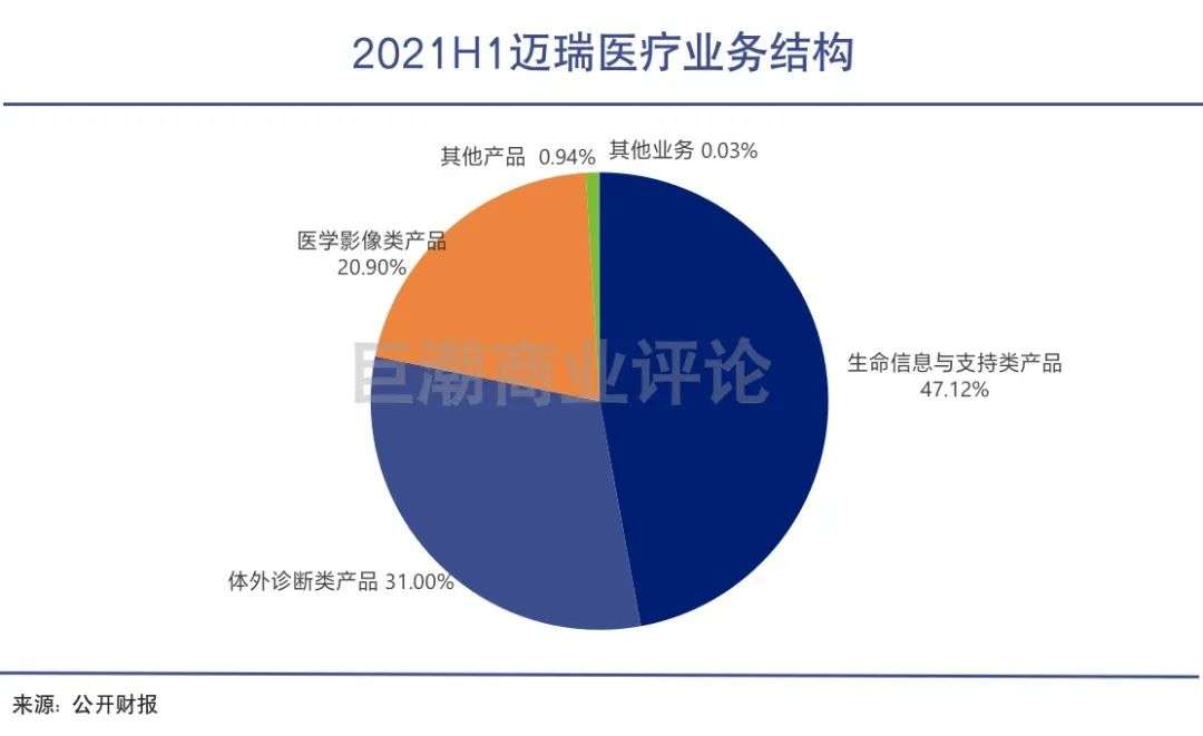 这样的业绩增速虽然算不上高速增长,但对于迈瑞来说殊为不易。因为受益于去年疫情,迈瑞的生命信息与支持业务(主要包括呼吸机、监护仪等)高速增长,还新开拓了新冠试剂业务。这使得其去年的业绩基数提高不少。