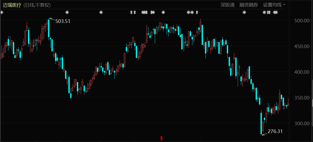 在8月20日大跌之前,迈瑞的股价已经从今年的最高点502元下跌到了335.27元,跌幅超过30%。