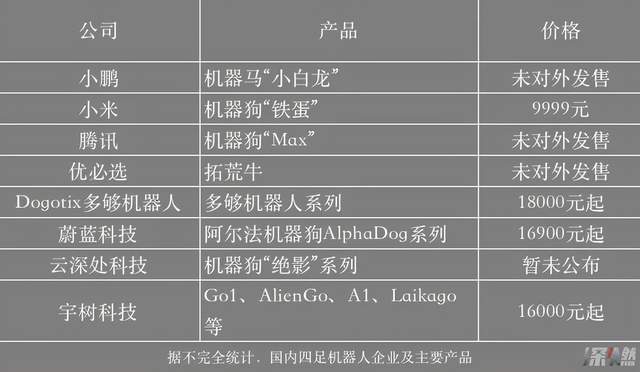 今年是国内四足机器人大年。除了上述该领域的创业公司持续更新产品线外,科技公司如腾讯、优必选、小米、小鹏在今年也都有四足机器人相关产品问世。