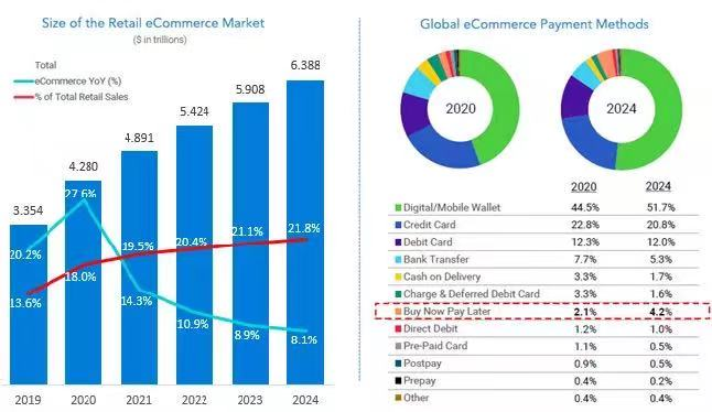 商家乐见其成,这种替代支付方式赋予了消费者更高的购买力和财务灵活性,进而帮助商家有效提高转化率和平均订单价值,特别是针对年轻一代消费者,他们在寻找新的消费信贷/支付方式,而不是传统的高利率信用卡。