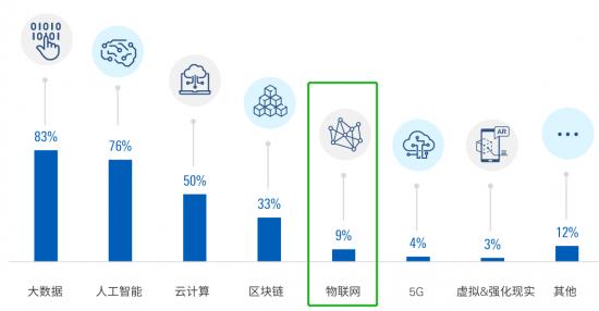 根据互联网金融协会2021年的调研数据显示,金融企业中,大数据、AI、云计算仍然是被主要应用的金融科技,而物联网应用只有9%。