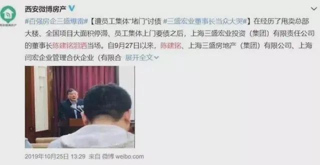 深陷流动性危机的三盛宏业,全国项目也大面积停滞,资金还被执行大“规模”监管,多重问题集中爆发,让陈建铭在面对员工集体上门讨债时,直接泪洒当场。