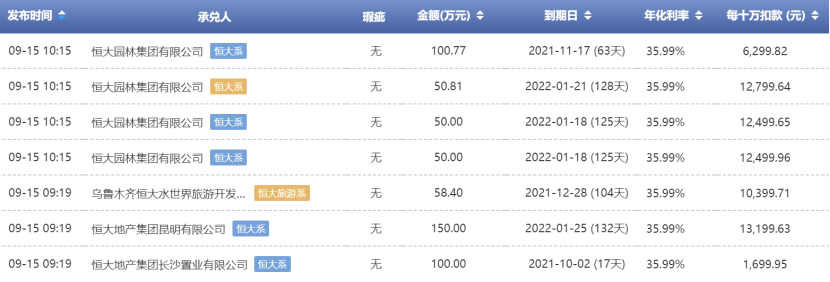 市值榜在一个提供商业票据交易的平台—上票圈上发现,恒大开出的商业票据,最高的年贴息率达到了35.99%。