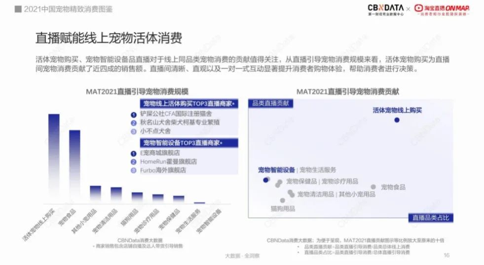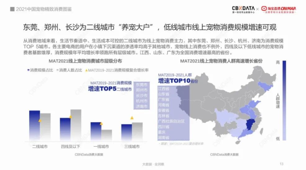 CBNData联合淘宝直播ON MAP推出《2021中国宠物精致消费图鉴》,共同探讨当下宠物消费的新趋势。报告显示,近三年国内线上宠物消费受消费人数增长及笔单价驱动,消费规模增长达1.5倍。与此同时,直播引导宠物消费近一年同比增长达2倍。